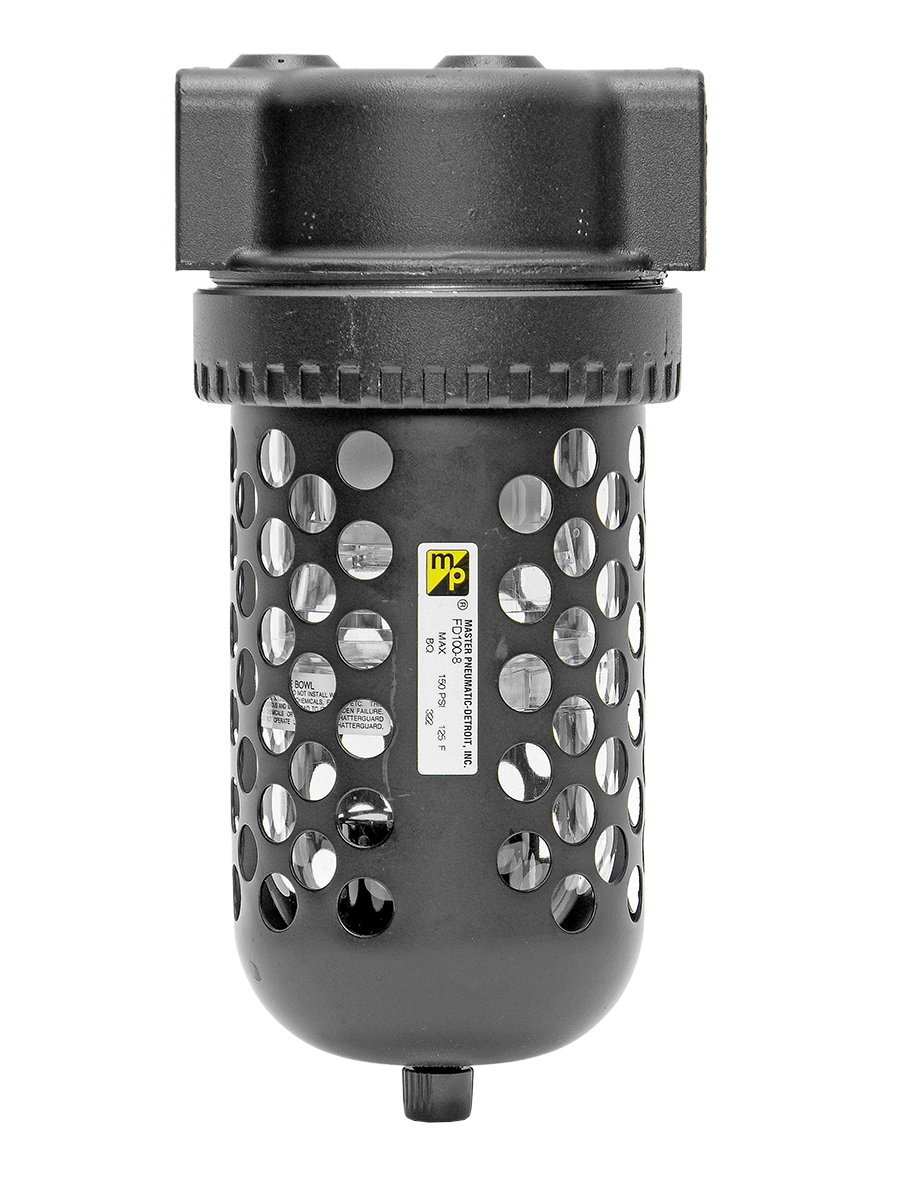 • High-strength polycarbonate plastic filter bowl with steel shatter guard; optional metal bowl with clear nylon sight glass