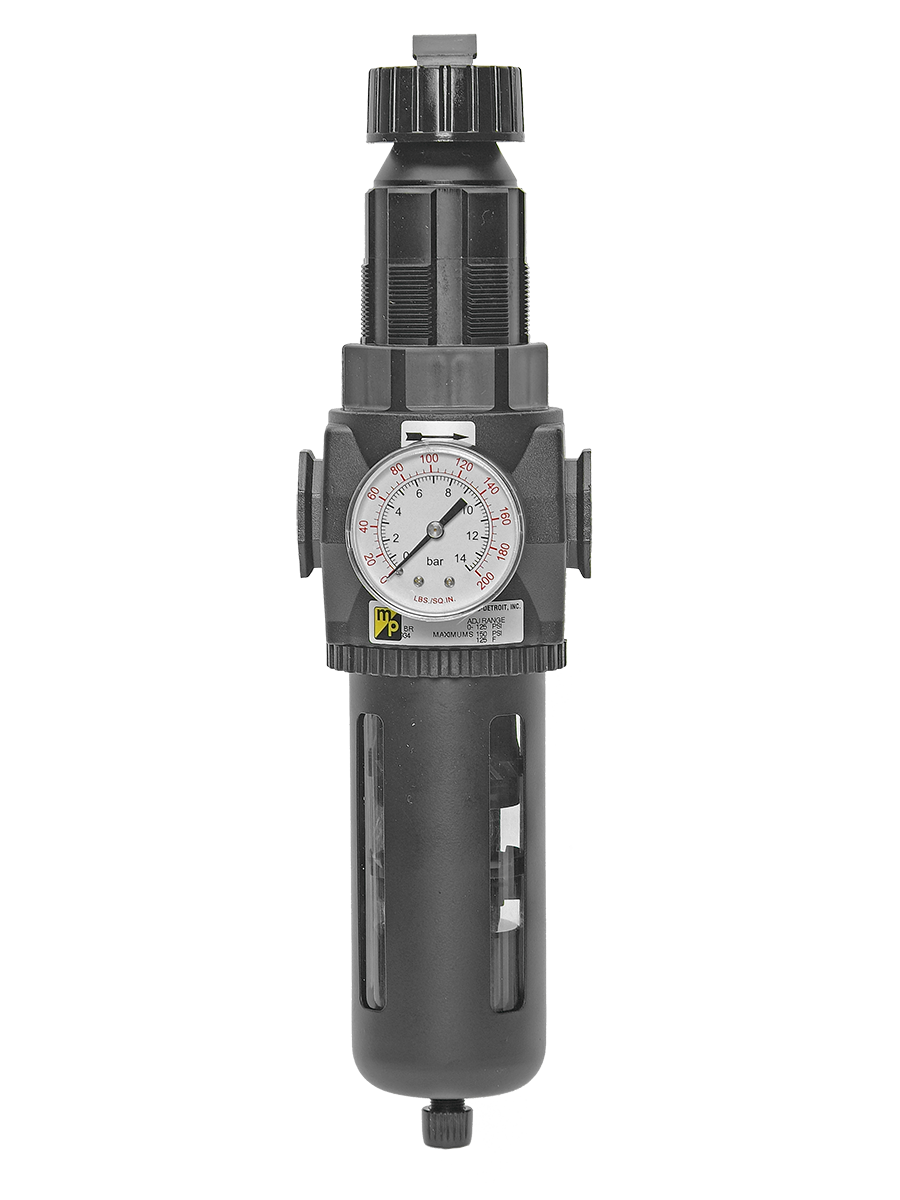 • Polycarbonate plastic bowl with steel shatterguard; optional metal bowl with sight glass